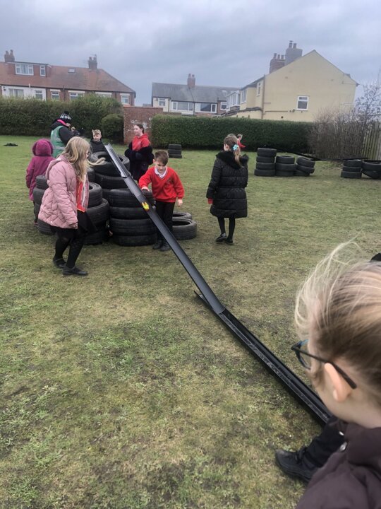 We have plans for the pallets that are outside the academy reception. You would be amazed at the imagination of our children who can see these seemingly simple objects and make them into a fortress, a boat, simply anything their minds come up with! Last week we had a huge marble run snaking the playground. Using tubes and tennis balls. The tyres are also a firm favourite; it is awe inspiring what the children can use these for as part of their creative play.